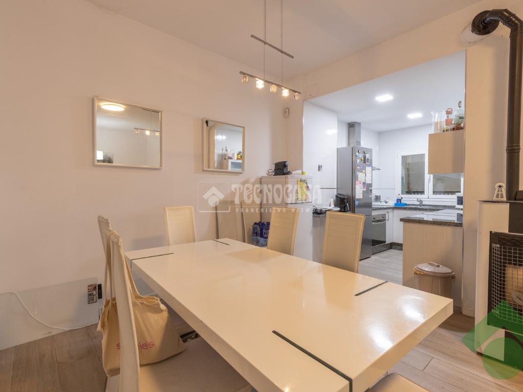 Amplio salón-comedor con cocina abierta, espacio moderno y funcional. Desde esta planta se accede a un patio interior. También dispone de estufa de pellets, que aporta confort y eficiencia en invierno.